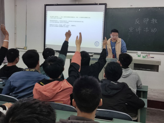 在宣讲活动过程中讲解员与同学们进行了深入地互动,增强了同学们反邪教的积极性,营造了积极反邪教的氛围。同时工作人员也对部分同学进行了互动奖励,进一步增强了学生与学院部门之间的联系。