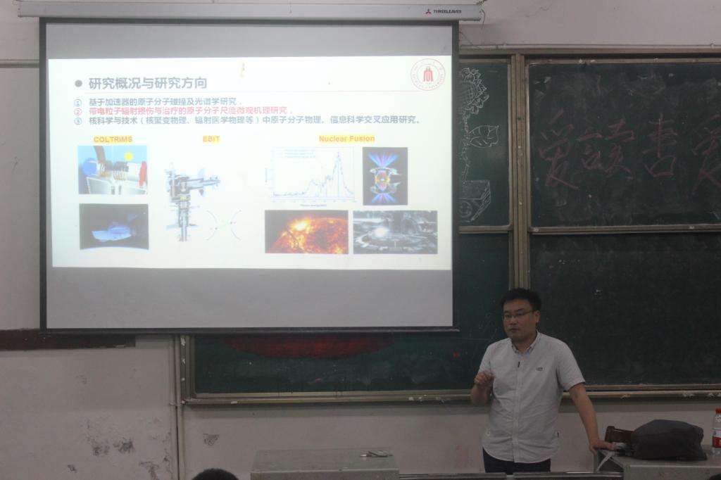 讲座开始,胡智民教授向我院同学进行了简单的自我介绍。随后,他介绍到宇宙中的太阳总是源源不断的为地球提供能量,太阳释放能量的方式是进行不断的聚变,而解决人类未来能源问题的一个重要途径就是核聚变,在很多时候也称作“人造太阳”。接下来,他向我院同学详细介绍了基于加速器的原子分子碰撞及光谱学研究、带电粒子辐射损伤与治疗的原子分子尺度微观机理研究、核科学与技术中的原子分子物理及信息科学交叉应用研究。