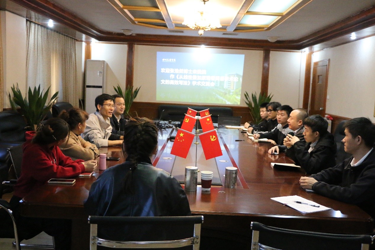 11月10日,我院于致远楼301会议室邀请四川师范大学的张浩然博士作“从线性叠加原理看英语学术论文的高效写法”的学术交流会,参会人员有我院党委书记李涛、院长陈光平和部分博士以及学生代表。此次会议旨在为我院师生提供一种高效英语学术论文的高效写法,帮助老师们在撰写高水平科研论文中突破语言关。