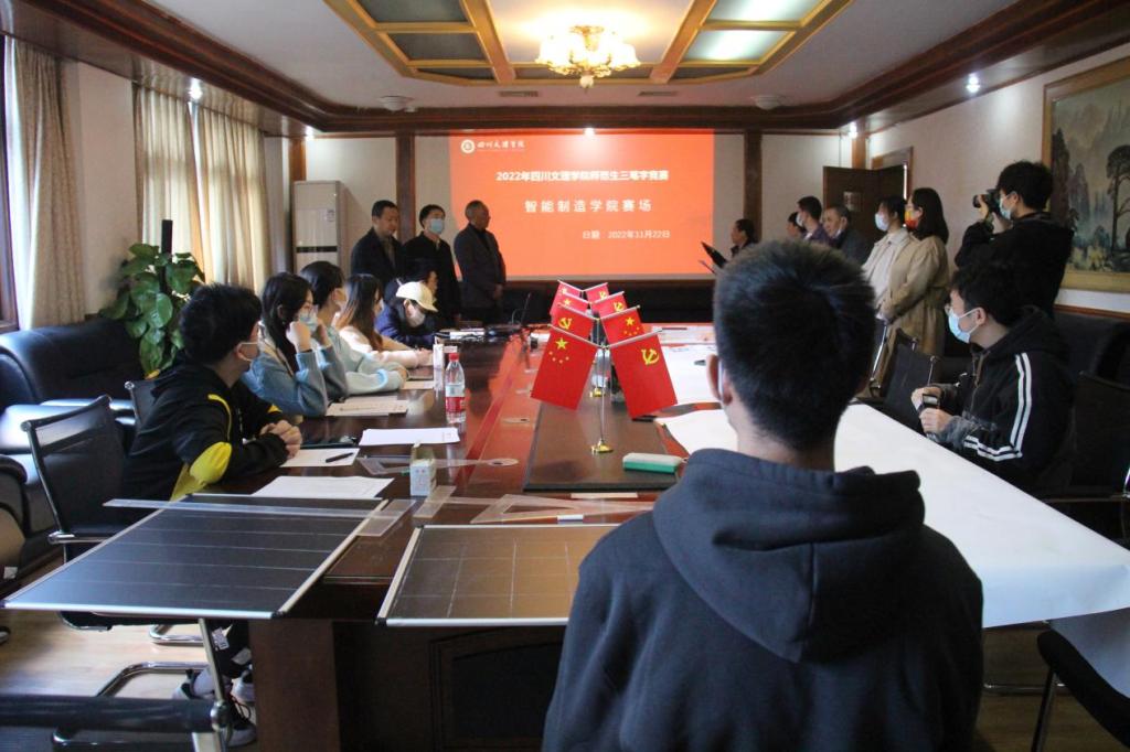 由学校教务处举办,中华传统文化学院承办的三字笔大赛决赛,必威BETWAY西汉姆联分赛场2022年11月22日在南坝校区弘远楼301会议室开赛,以“笔墨飘香满校园,三笔大赛展风采”为主题活动,项目包括钢笔、毛笔、粉笔字的书写。出席此次比赛的有党总支书记李涛、院长杨成福、副院长刘笃晋和参赛学子。此次比赛由户永清、谢清爽、熊伦、李强、杨志豪、江明全、邓洪君担任指导老师。