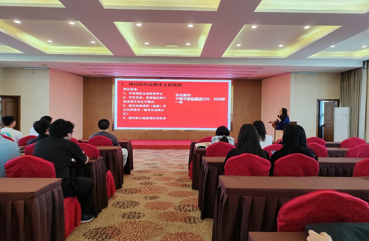 为了保障毕业后期工作顺利完成,教学科研办负责人及学工办相关老师在答辩前召开了专题会议,就学位授予、毕业实习、征兵及就业工作进行了说明。
