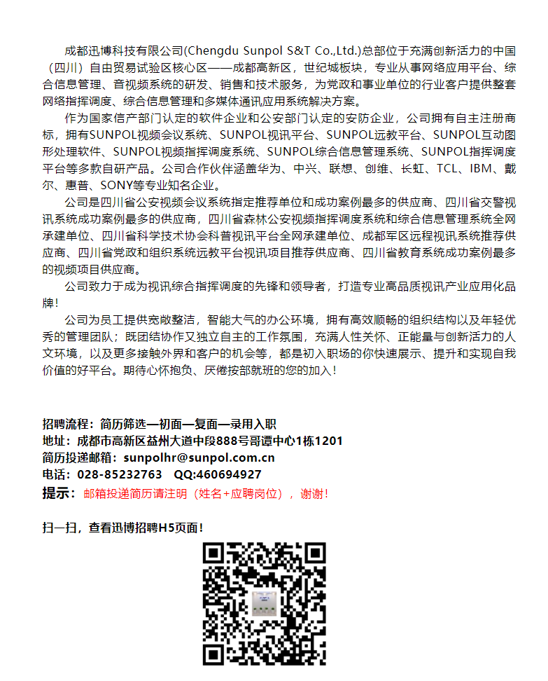 成都迅博科技有限公司招聘(川文理就[2022]0378)