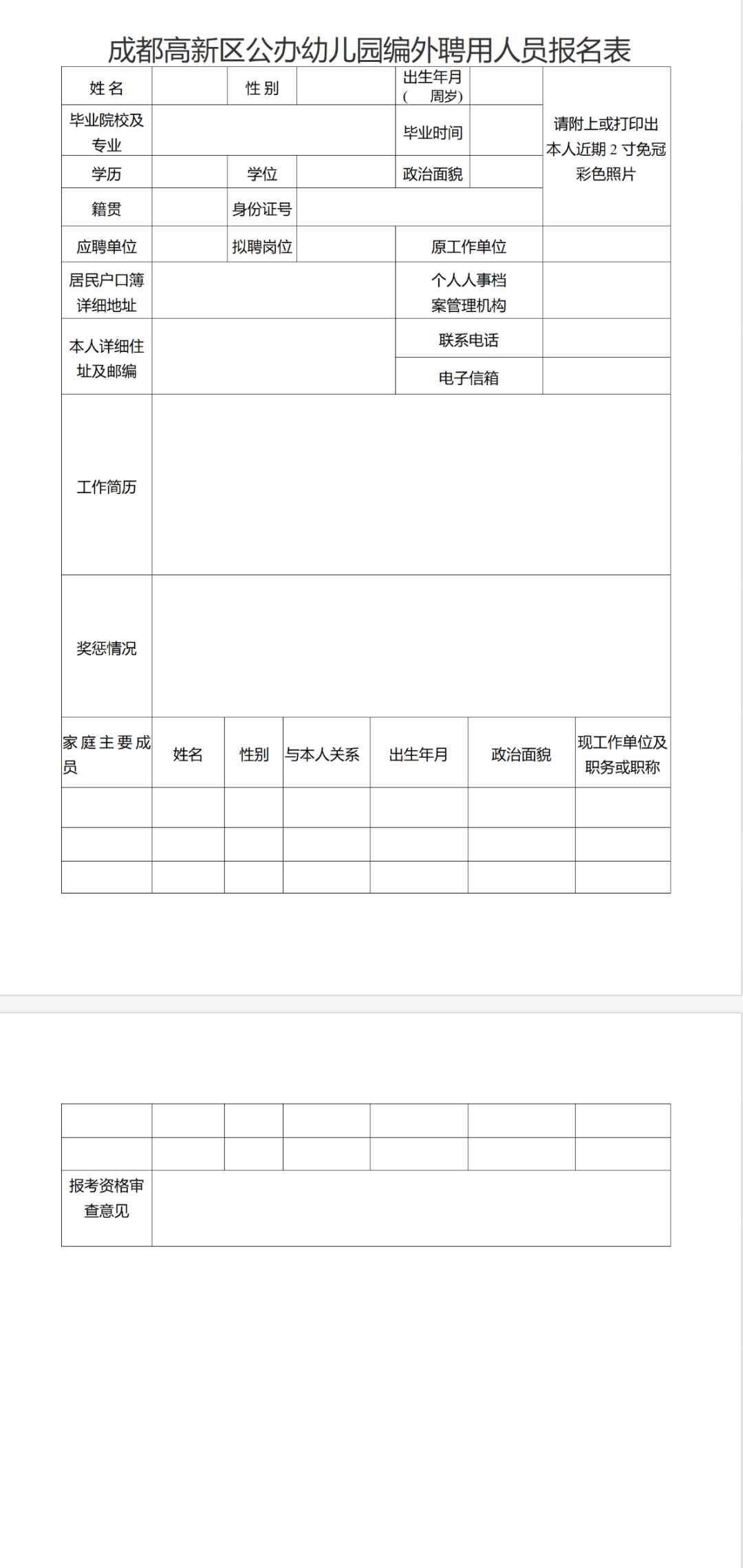 成都高新区公办幼儿园编外聘用人员报名表.docx
