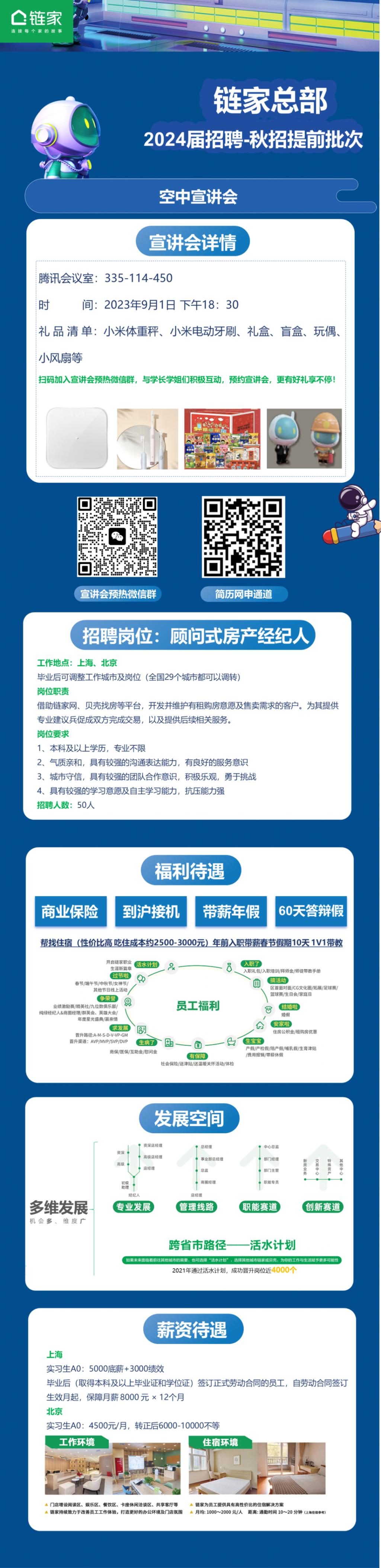 链家总部 2020 级实习生校园招聘简章(川文理就[2024]00003)
