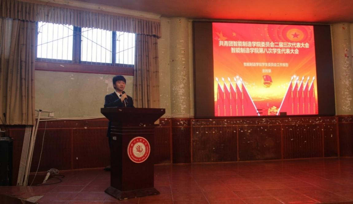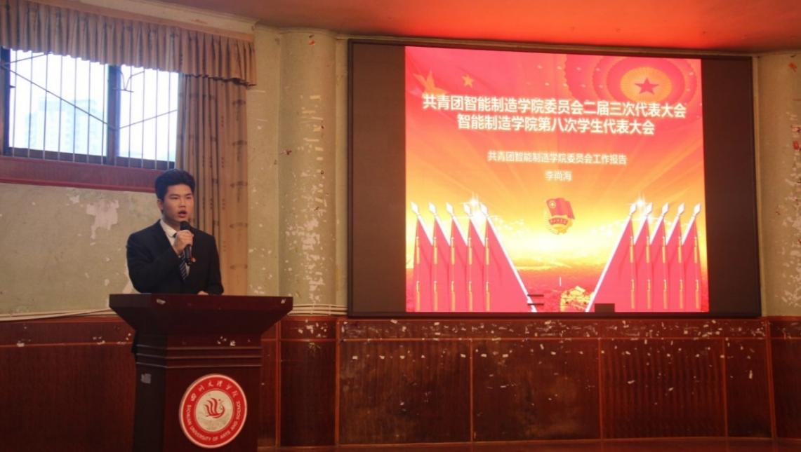 李尚海代表共青团必威BETWAY西汉姆联团总支向大会作题为《艰难困苦创新高,玉汝于成铸辉煌-挺膺担当、做有理想、敢担当、能吃苦、肯奋斗的新时代青年人》的工作报告。