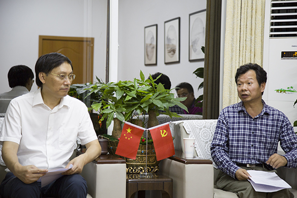 (校长王成端与何国田教授商谈“两院”发展事宜)