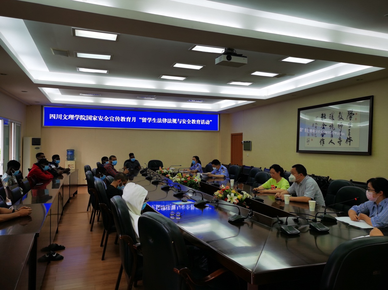 为了推动国家安全宣传教育工作深入开展,增强我校外国留学生的法律法规意识,加大疫情期间必须遵守法律政策的教育宣传力度,进一步做好外国留学生的日常管理工作,2020年5月7日,国际交流合作处和必威BETWAY西汉姆联联合举办了bw必威西汉姆联“国家安全宣传教育月”留学生法律法规与安全教育活动。活动邀请到达州市公安局治安大队教导员刘懿博警官和胡灵警官为在校的外国留学生做了专题讲座,国际交流合作和必威BETWAY西汉姆联相关人员出席了本次讲座。