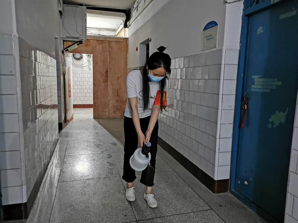 在宿舍楼报到点,他们积极做好返校同学的引导和咨询工作,协助公寓管理员做好健康包、学生公寓疫情监测、人员流动信息情况,协助公寓管理员做好门厅防疫消毒消杀工作,引导宿舍人员遵守防疫相关规定:不串门、不聚集,及时做好每日内务工作。