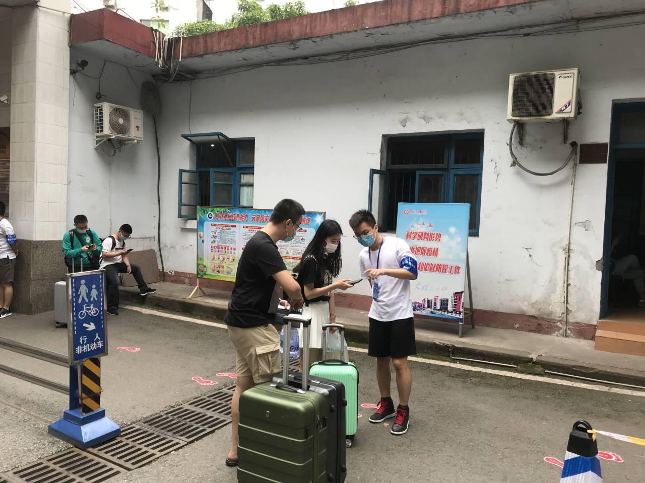 5月27日起,bw必威西汉姆联大三、大四同学开始分批次返校。为做好防疫复学工作,学校在全校学生中发起防疫复学志愿者招募,必威BETWAY西汉姆联的学生党员、干部,充分发挥先锋带头作用,积极报名参与,很快就组建了一支81名学生党员、干部组成的志愿者队伍,参与到学校“爱在文理”青春志愿、学生公寓党员两个志愿者团队中。在学校疫情防控领导小组的统一调度下,志愿者们被分派坚守在南坝校区校门口以及食堂、各学生宿舍楼栋等区域,从早上7:30到晚上22:00,志愿者们不畏风雨,奉献爱心,细心服务返校同学。