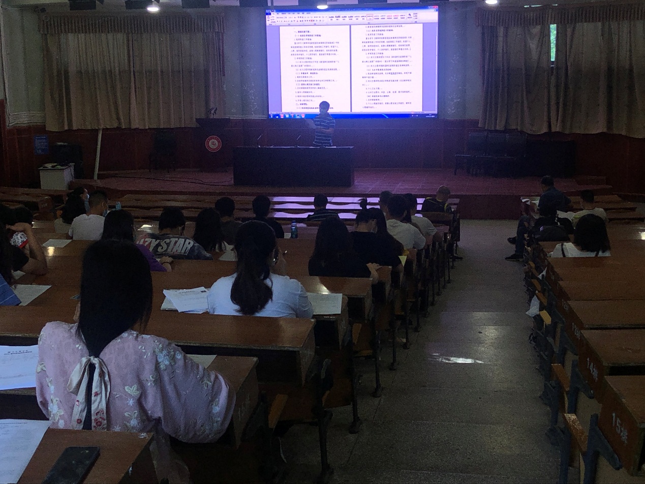 在线上召开全院主题班会前,5月30日,学院首先组织带班辅导员、班团主要干部在南坝校区学术报告厅进行了新冠肺炎防控知识培训,培训由学院党总支副书记侯翔主持。这是继前期线上防疫知识培训后,进行的第一次线下防疫培训,参加培训人员均严格按照疫情防控要求,进行了体温测试、人员签到,与会人员全程佩戴口罩,分散就坐,确保了参培人员安全。这次培训的主要内容有:新冠肺炎防护知识、政府及学校防疫工作措施、应急处置流程等。通过这次培训,带班辅导员和班团干部们对学校“七案七制三流程”有了更全面的了解,清楚了防控常态化后学生日常管理的要求,并且学习到了更多个人防护知识和心理互助工作。培训会后,他们将采取线上班会方式对全体返校学生进行线上培训。