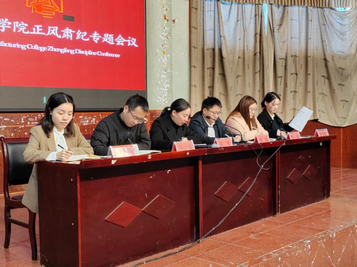 为督促学生遵守校规校纪,强化校风建设,我院2022年11月18日在学术报告厅开展正风肃纪专题会议。参加此次会议的有党委副书记侯翔教授,学工办主任苗芳老师,辅导员李林老师、蒋小朗老师、胡雪莲老师、向伶俐老师,各年级班长、副班长、团支书、纪检委员,全体党员以及团学干部。本次大会由学工办主任苗芳主持。