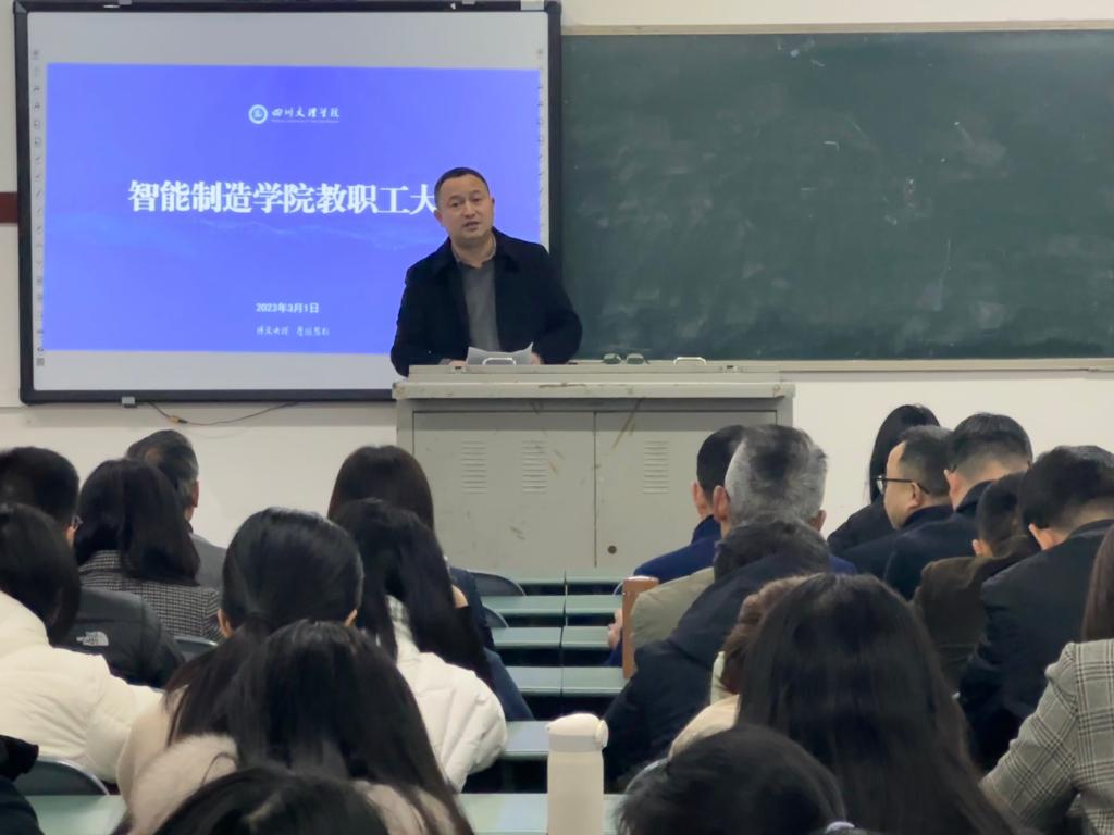 3月1日下午,学院召开全体教职工大会。党委书记李涛传达学校2023年春季干部培训会议内容并就贯彻落实会议精神提出要求,院长杨成福就2023年学院党政工作要点进行全面部署和安排