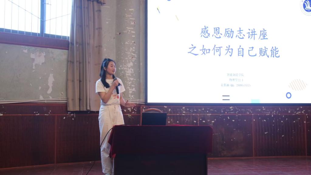 袁慕涵结合自身的经历和实践,不仅向同学们分享了她丰富多彩的大学生活,还向同学们传授了宝贵的经验和教训,鼓励同学们要勇于追梦、不畏艰险,用实际行动去践行感恩之心,回报社会。她让同学们深刻认识到,励志和感恩是青春路上不可或缺的力量。最后,她希望同学们能够在提高自己的艺术欣赏力的同时巩固自己的专业知识,只有心怀感恩,才能更好的回报社会。
