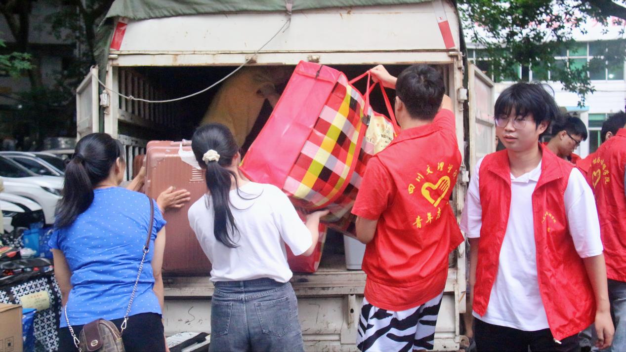 搬迁服务团队的成员上下齐心、团结协作,在搬迁过程中为同学们提供全方位的帮助,行李打包、搬运、学生接送、入住宿舍等各项工作都有条不紊地进行。