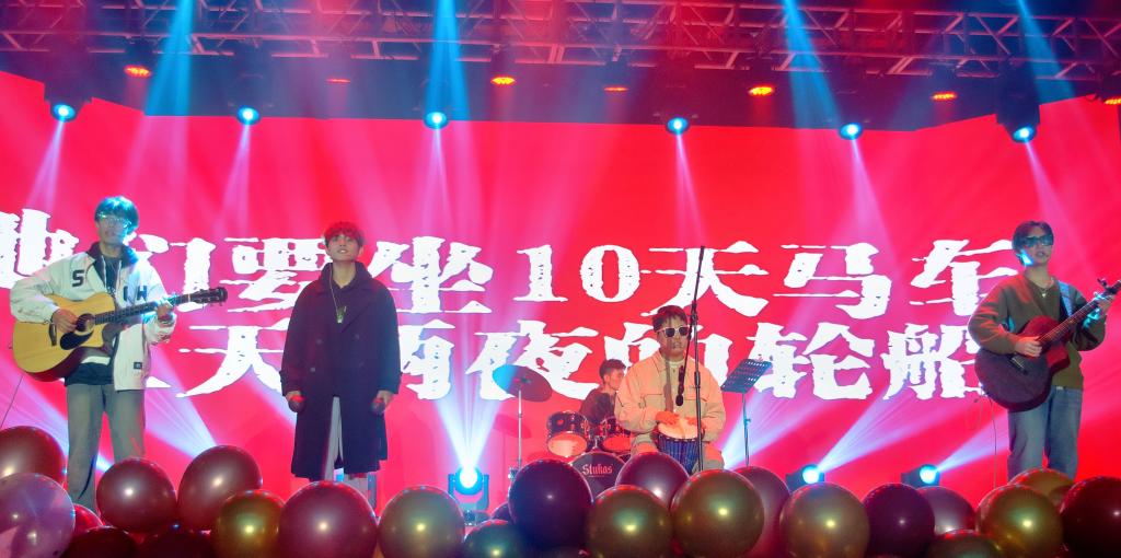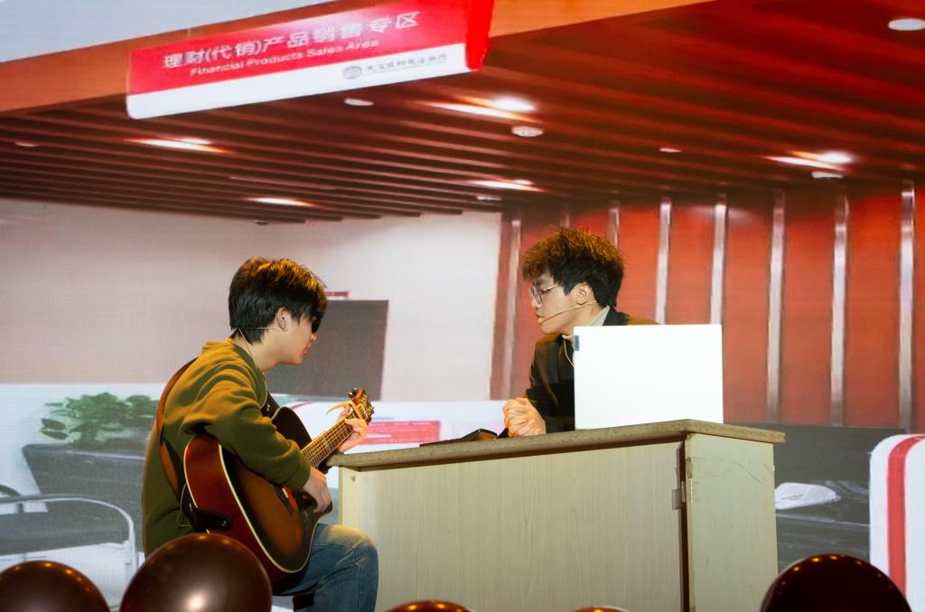 值得一提的的是,特邀嘉宾秦小渝老师与保安老师登台献唱,将现场气氛推向了一波波高潮,为师生们呈上了难忘的音乐盛宴。秦小渝老师率先登场,带来一首《目不转睛》,专业范儿十足,前奏一响,醇厚嗓音便倾泻而出。他精准拿捏歌曲节奏,轻快的旋律经其演绎,洋溢着青春的悸动与热忱。紧接着,保安老师的登场令人眼前一亮,身着民族传统服饰的他,带着质朴笑容,一亮嗓,深情演绎《天边》,那辽阔悠远的歌声,仿若带着听众奔赴广袤草原,于喧嚣中勾勒出宁静诗意画卷。台下同学们不自觉跟着节奏摇摆身体,现场秒变大型“歌迷见面会”,欢呼声此起彼伏。