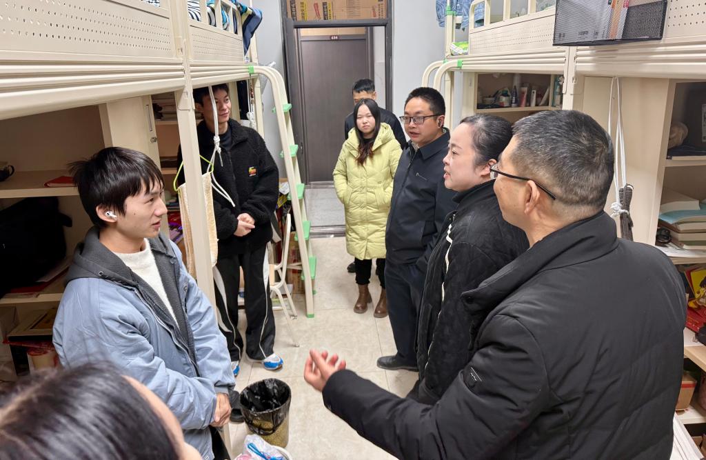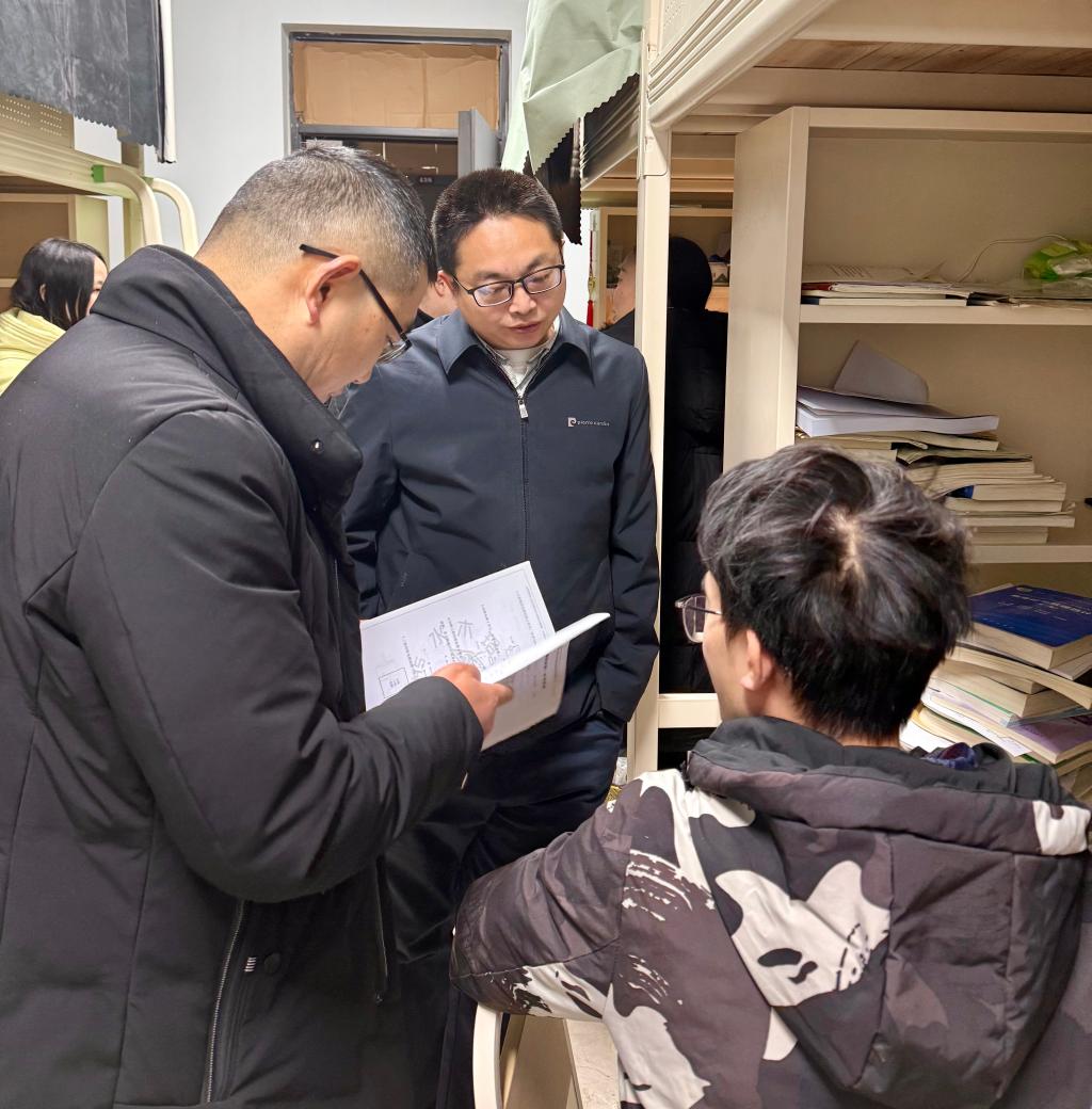 为鼓舞2025届考研学生的备考士气,帮助他们舒缓备考压力,坚定考研信念。12月12日,学院领导与教师代表深入学生寝室,为即将踏上考场的学子们送去温暖与关怀。此次走访慰问活动由学院党委副书记吴晓燕、副院长赵全军带队,机械教研室主任曾强、学工办苗芳等教师一同参与。