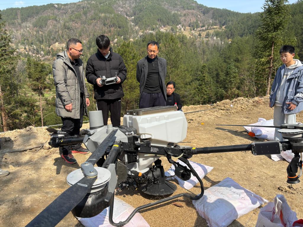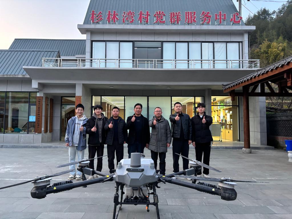 面对杉林湾村大田坡组撂荒地地块分散、坡度陡峭带来的传统人工复耕成本高的问题,我院无人机研究团队对撂荒地展开“低空耕种”。4小时完成80余亩播种区域无人机精准测绘及智能播种,实现全流程提质增效80%以上,村干部与村民对无人机助农给予高度评价。