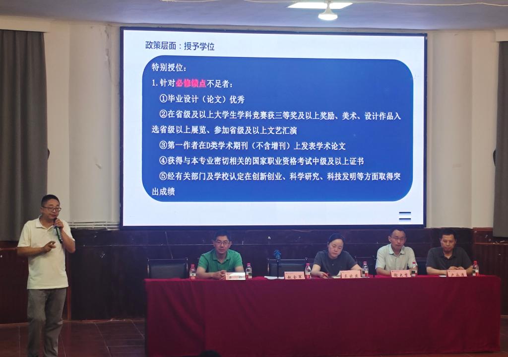 赵全军重点就2022级学生毕业条件和实习等相关事情进行了全面说明。他强调,学生需满足三个基本毕业条件:一是修满培养方案规定的全部学分,二是通过毕业设计(论文)答辩,三是完成规定的实践教学环节。赵院长特别提醒同学们要对照培养方案认真核查个人学业完成情况,及时查漏补缺,确保顺利达到毕业要求。此外,他指出,毕业实习是专业学习中不可或缺的重要环节,同学们要认真对待,将所学知识运用到实际工作中,积累宝贵的实践经验。