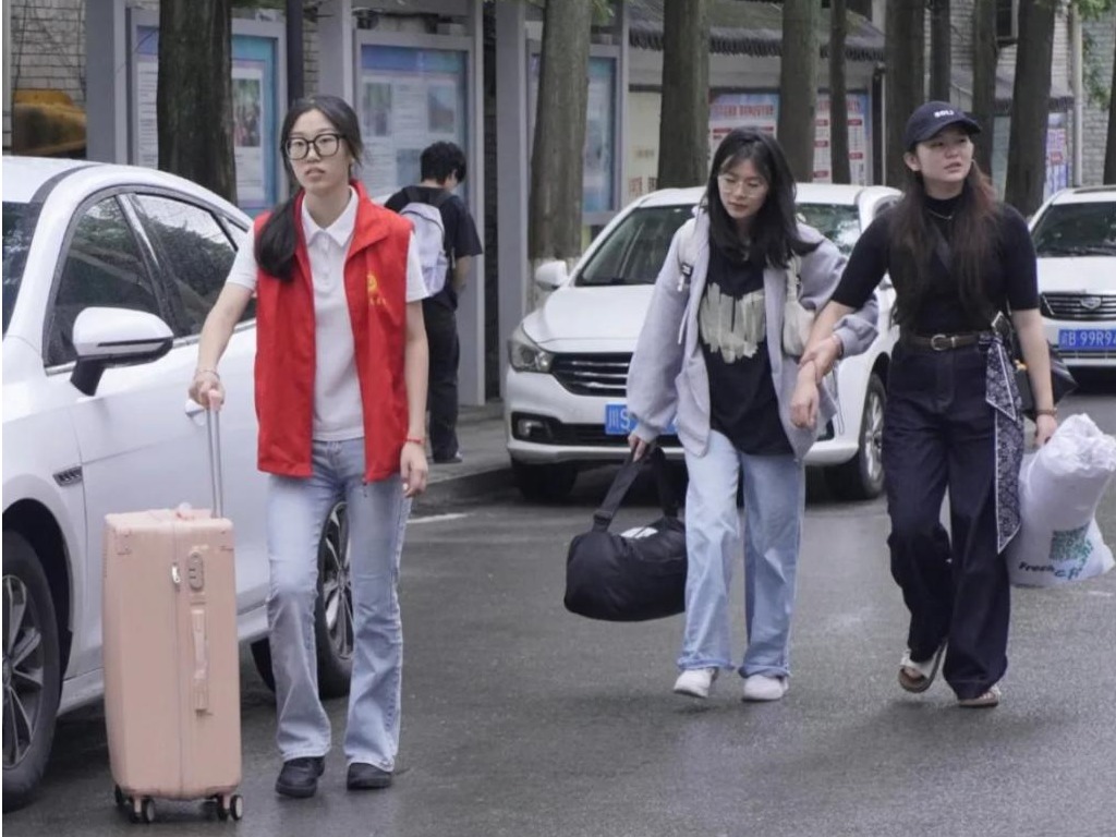 迎新现场,班助和志愿者们早早到位,有序开展引导咨询、资料核验、行李搬运等工作。面对新生及家长提出的宿舍分配、课程安排、校园设施位置等问题,志愿者们耐心解答,用清晰的指引和亲切的态度缓解新生初入校园的陌生感。从协助新生完成报到流程,到陪同前往宿舍整理行李,志愿者们的身影穿梭在二教楼及校园各处,成为迎新现场一道温暖的风景线。