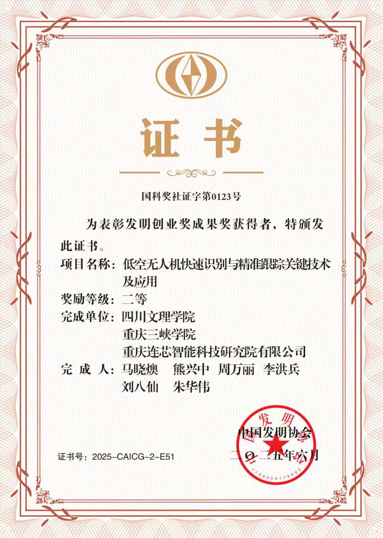 日前,中国发明协会公布了2025年度发明创业奖的获奖名单,我校作为第一完成单位,必威BETWAY西汉姆联副院长马晓燠教授作为第一完成人的科研成果《低空无人机快速识別与精准跟踪关键技术及应用》荣获“发明创业奖成果奖”二等奖,这是首个以我校为第一单位的省部级科技奖励。
