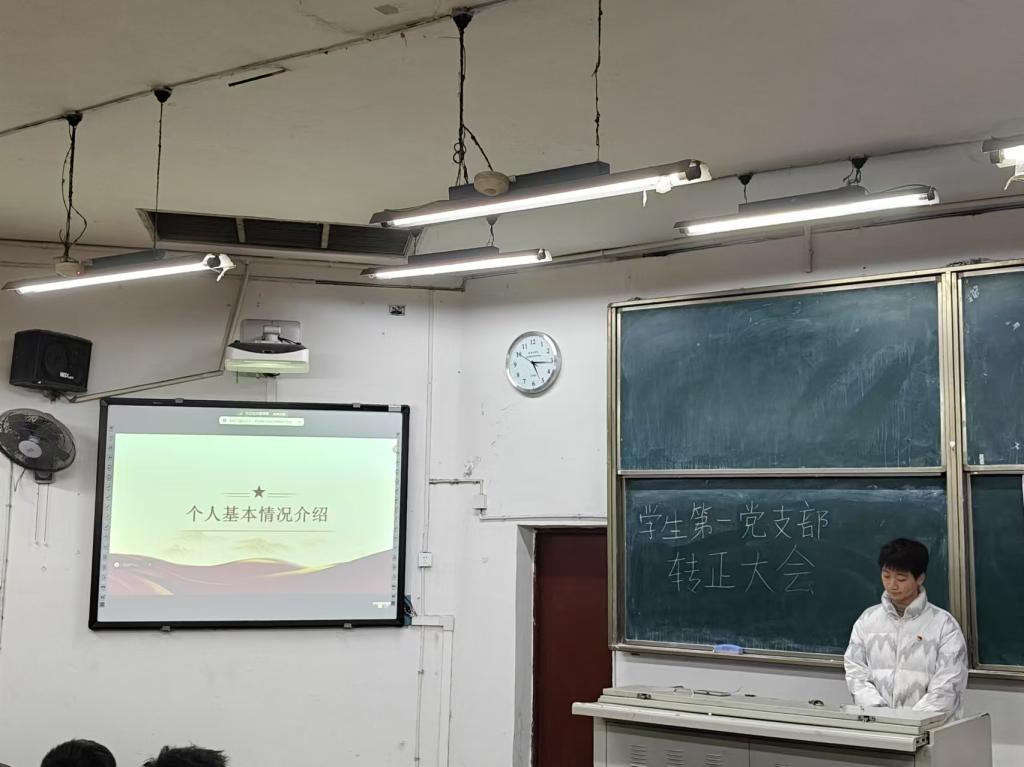 本次转正大会由学生第一党支部书记潘阳骉主持。会上,刘旭同志上台,就自己一年来的学习、生活和工作以及对党的认识等方面进行了汇报。随后,由入党介绍人介绍了他的基本情况,包括在预备期内的学习、工作和思想政治表现等方面的综合评价。