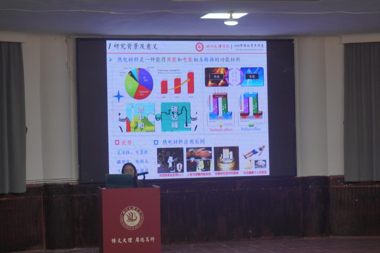 为激发同学们对热电材料的兴趣,拓宽同学们热电材料及器件方面的知识储备。11月20日在bw必威西汉姆联南坝校区的学术报告厅,由钟艳副教授所主讲的一场聚焦热电材料及器件的应用领域及发展的学术讲座拉开帷幕。